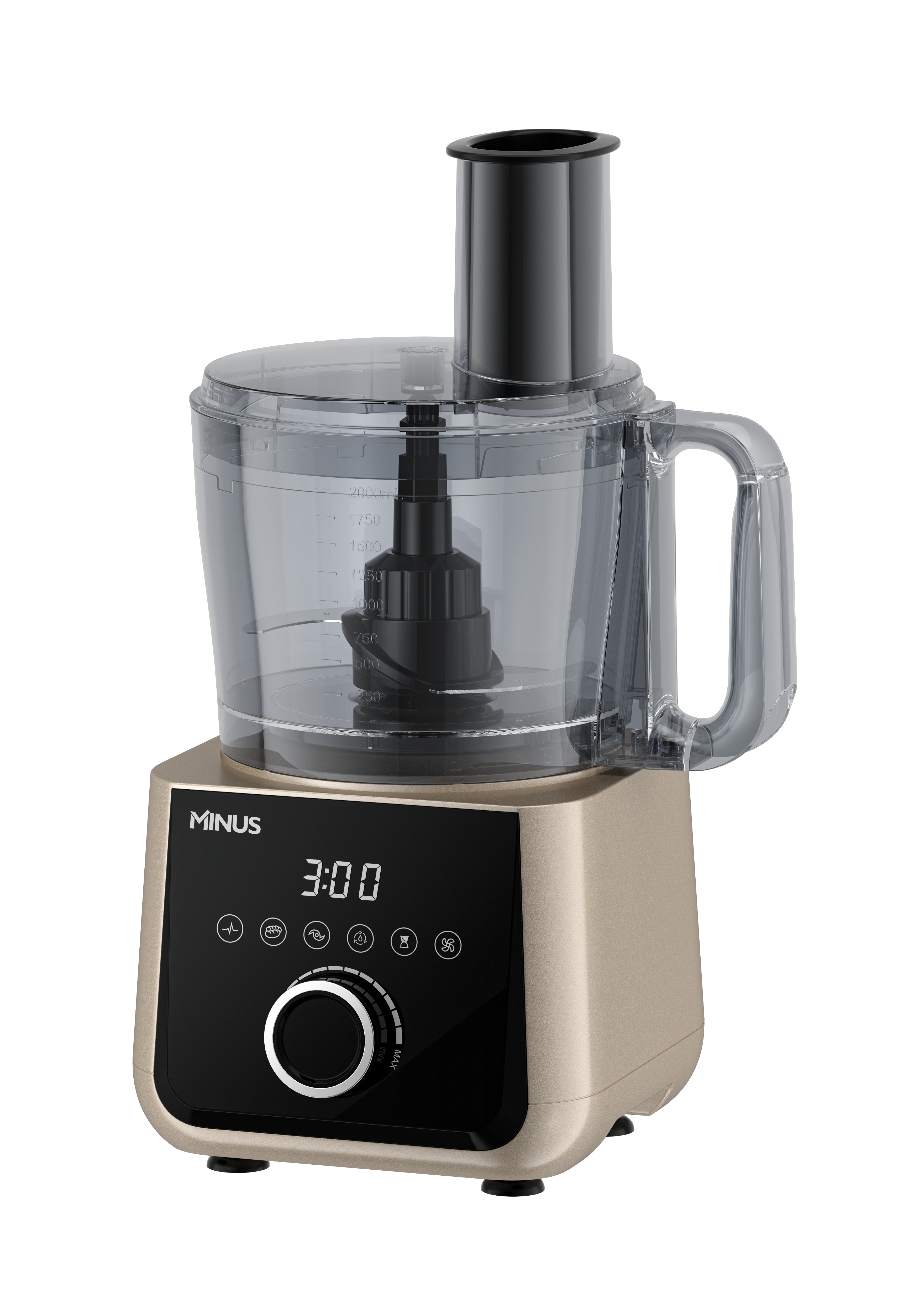 Minus Professional Plus Processor with large capacity and lower noise to be the best choice of users, 3 stainless steel blades for shredding, slicing and French fry.